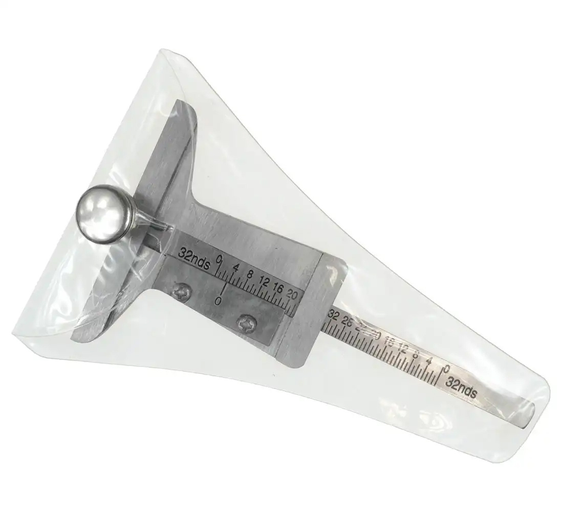 Simply fit the probe into the groove and read the result. Small size of the tool means an easier using and storing of the tool. Plus to that, the tool has two scales: in millimeters and inches. If you want to change the scale, simply turn the scale.