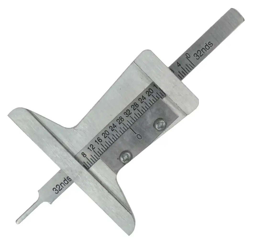 Metal tyre tread depth gauge - two measurement scales + case