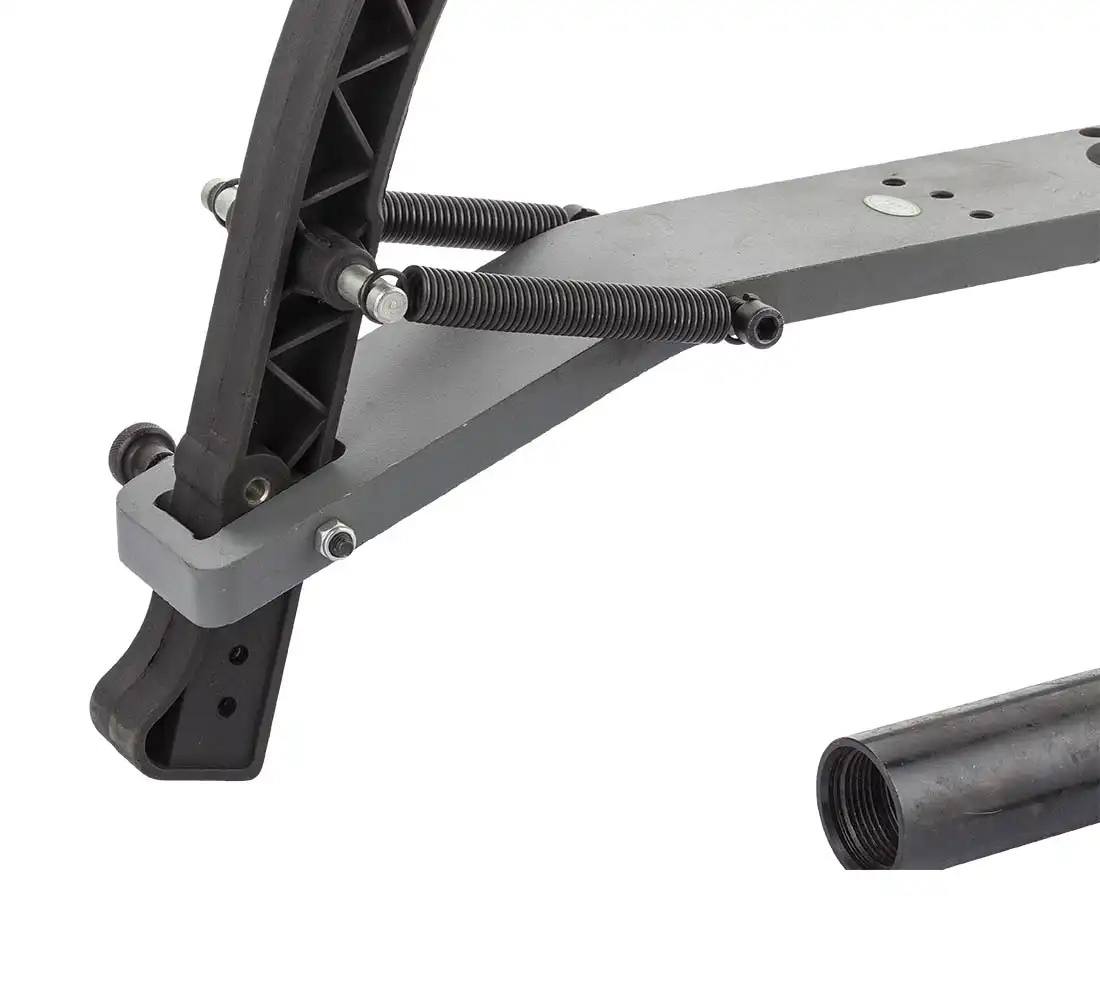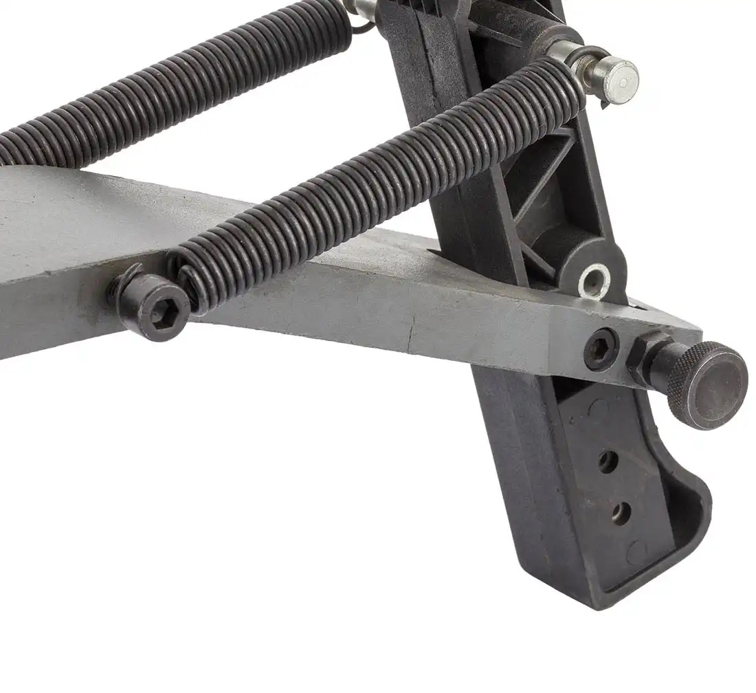 There is a spring clamping system which makes it easier to mount any rim. Two spring arms clamp over the wheel, eliminating the risk of any elements going loose.