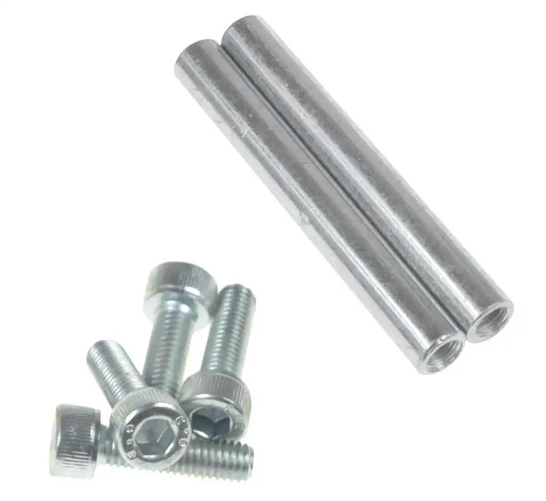 The filter is connected to the oil dispenser with two external threaded spindles on one side and the other on the other. The split cube, on the other hand, is attached to the oiler by means of two studs with internal threads on both sides.