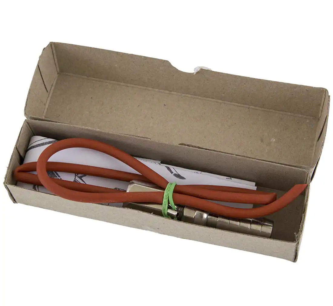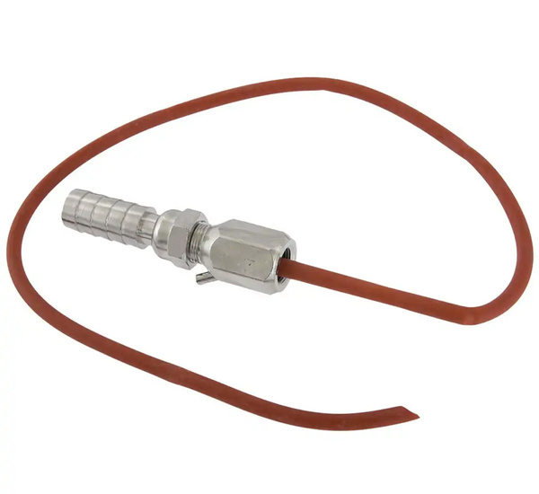 The adaptor comes with a nipple of 13 mm and a nozzle with a rubber hose that make it easier to remove air while inflating the tyre.