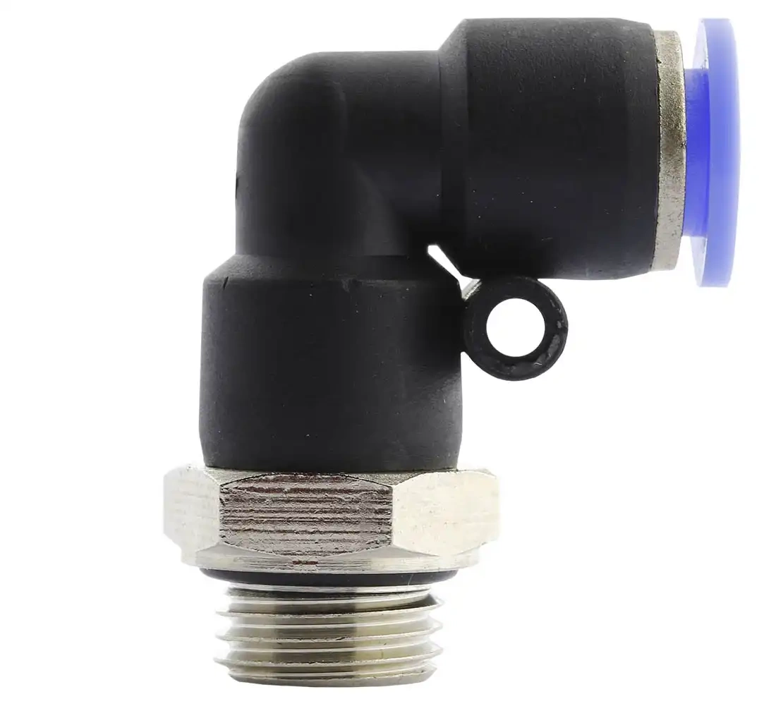 Elbow push in fitting for 8mm hose + 1/4 ""thread