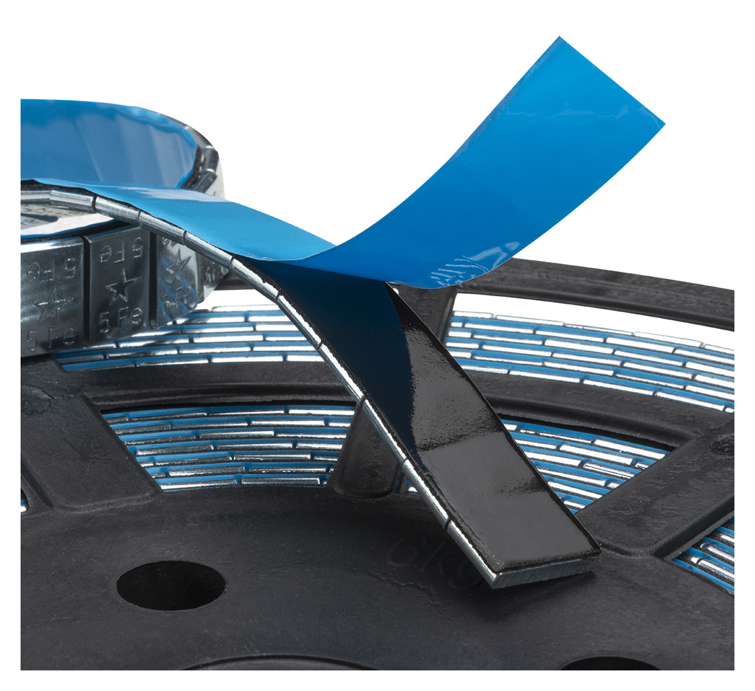 A strong tape permanently attaches the weights onto the rim so that it is impossible to break it. Weights are galvanized and steel coated with a protective layer against corrosion and splashes. Gloss zinc fits perfectly into shiny, metallic or chrome rims. They are also available in the store weights coated (for rims matte shades of gray) and black (coated with black lacquer).