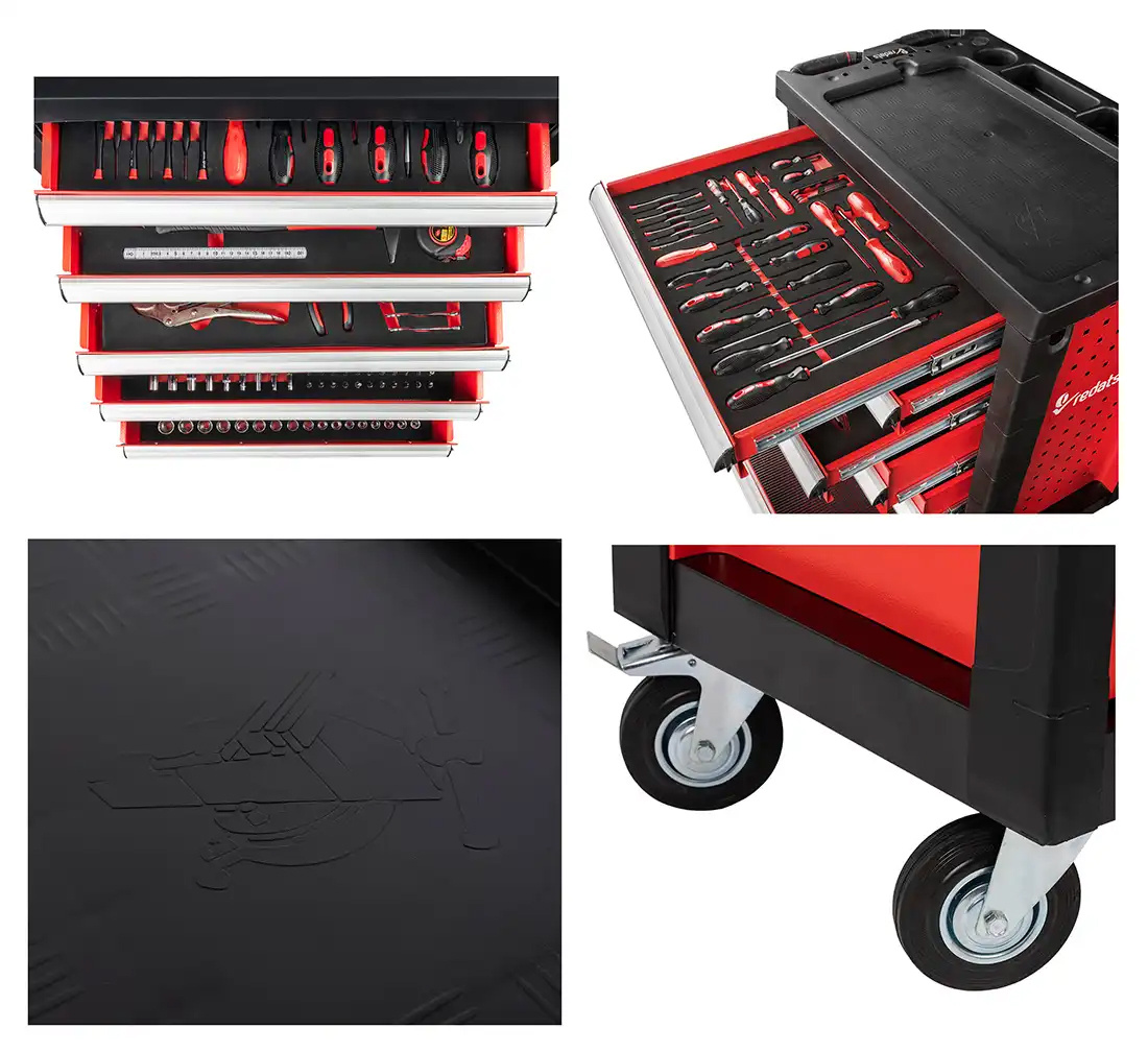 This tool chest is made of a very durable material - this means, it’s able to work for years, even when used at a car service.