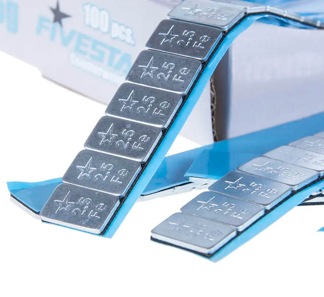 Using the FIVESTARS wheel weights provides for an easy and quick balancing of any ALU rim. Top quality of zinc, strong tape, along with the fact that these weights are extra-thin - these are the main advantages of the FIVESTARS weights. Extra flat weights 2.5 g are only 2.7 mm thick (along with the tape). They were designed to spot even very tight spaces between brake calipers and wheel rims.