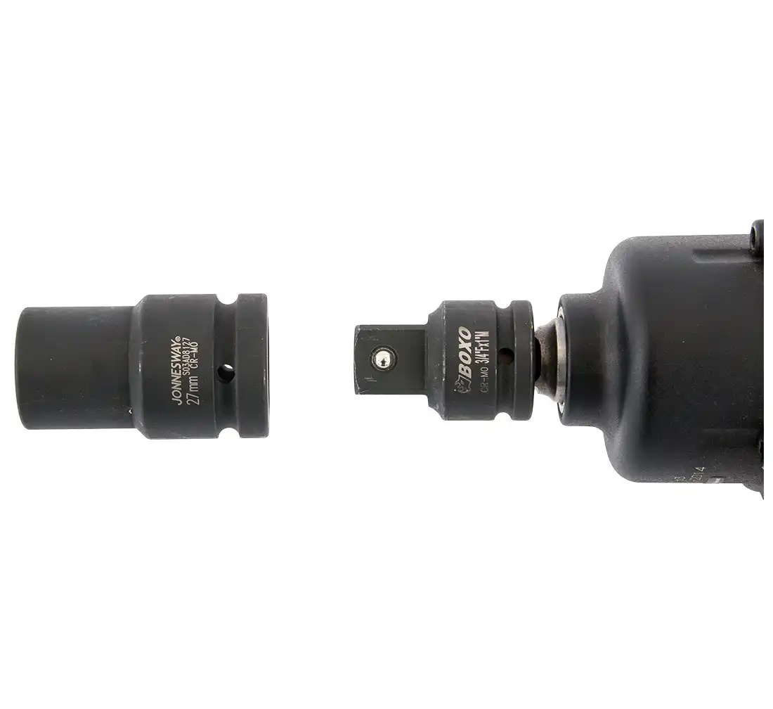 - Adapter for 1 inch impact sockets for attaching them to a 3/4 inch impact wrench.