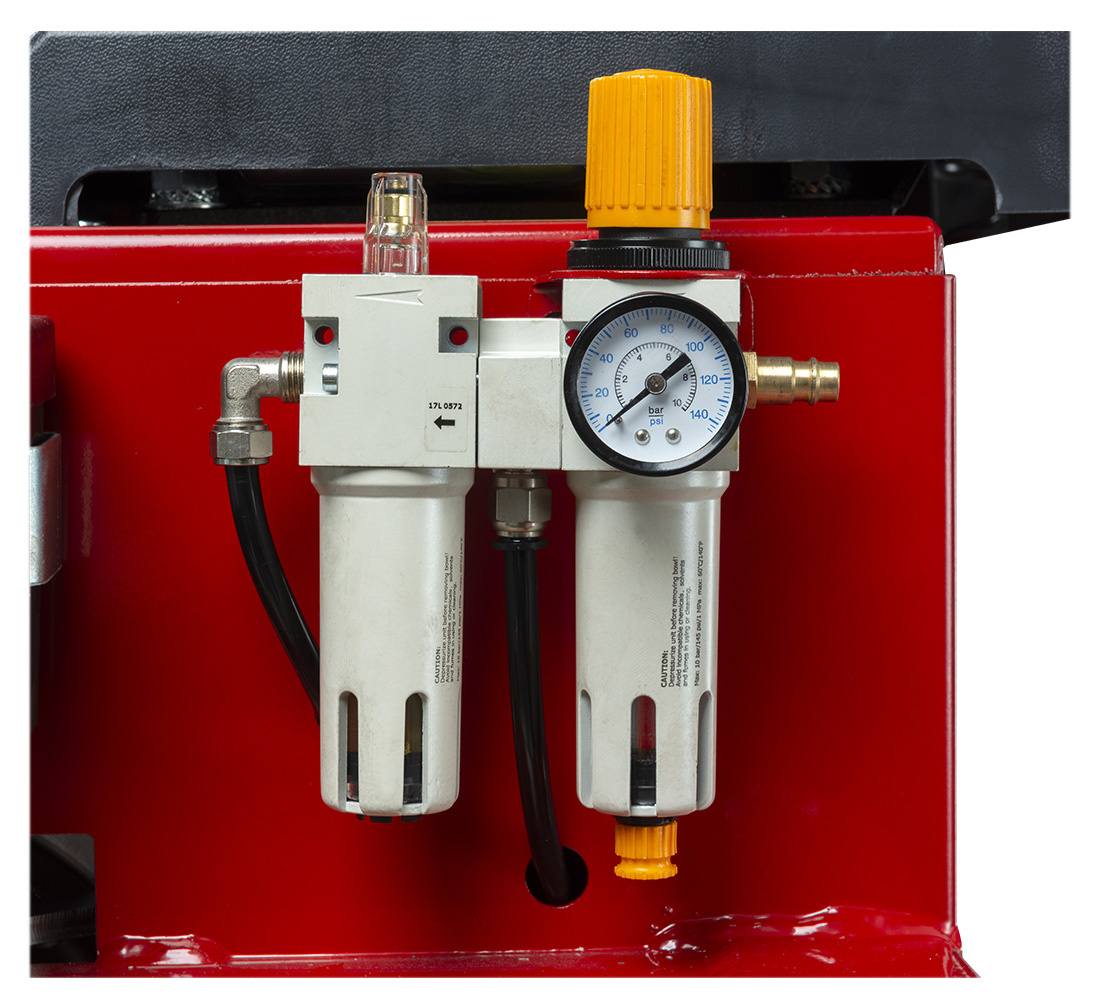 Both the turntable and jaws are made of top-notch materials. They are going to last for long, provided that the basic maintenance jobs are done. Tight pneumatic system is equipped with air separators and quick couplings designed by renowned brands.