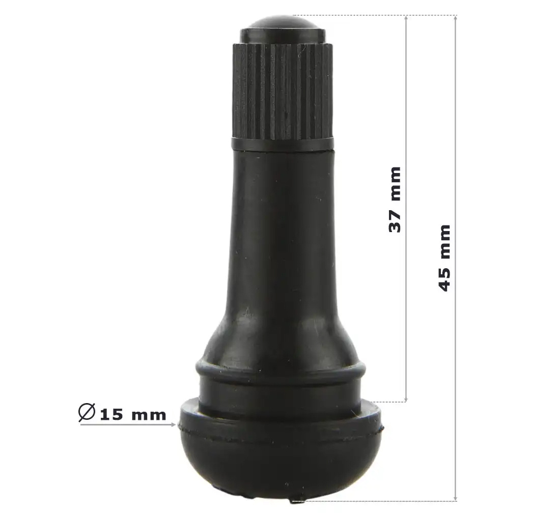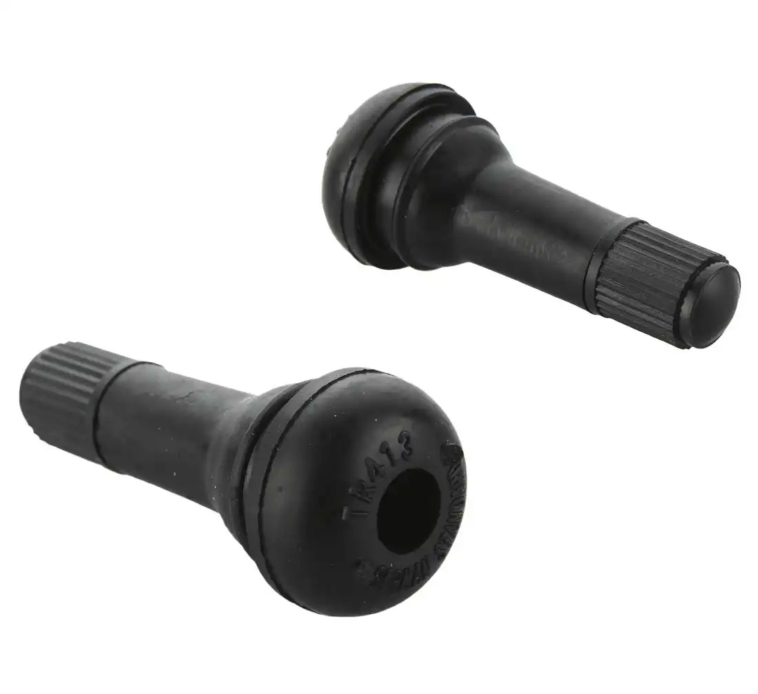 Made in Germany rubber valve TR413 tubeless wheel. The most popular size valve, used in most steel and aluminum rims. High precision valve presented was awarded the internationally recognized quality certification by TÜV SÜD. The choice of these valves ensures security in daily operations. Valves are complete with insert strip and cap.
