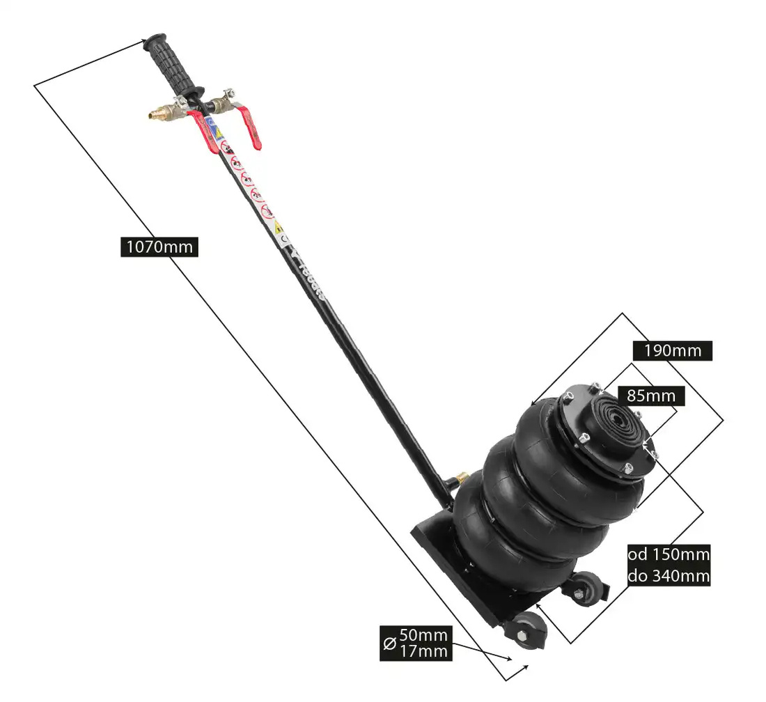 While designing this air jack we used top quality materials only. Cushion with three layers was made of reinforced rubber. The telescopic structure of the lift means a better stability and eliminates the risk of the lift’s swinging.