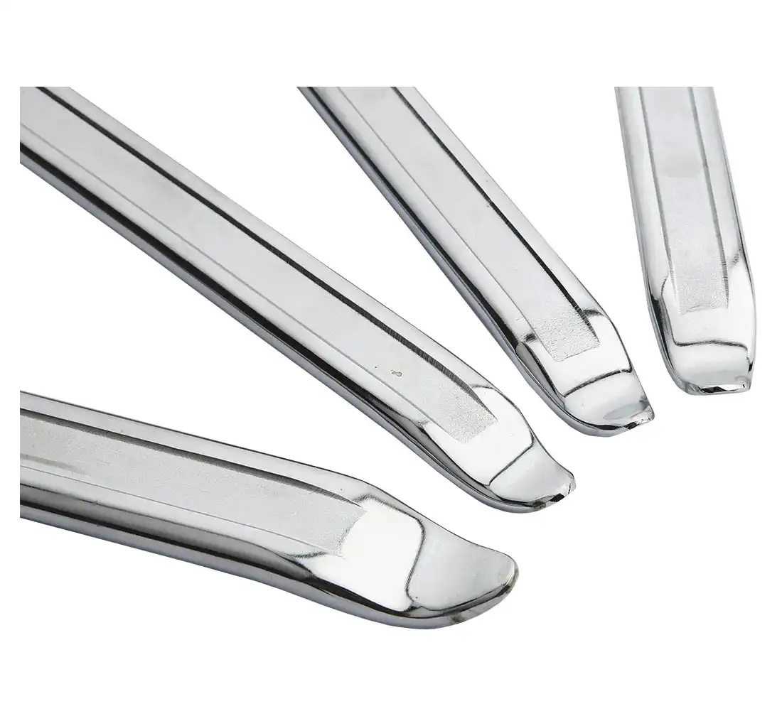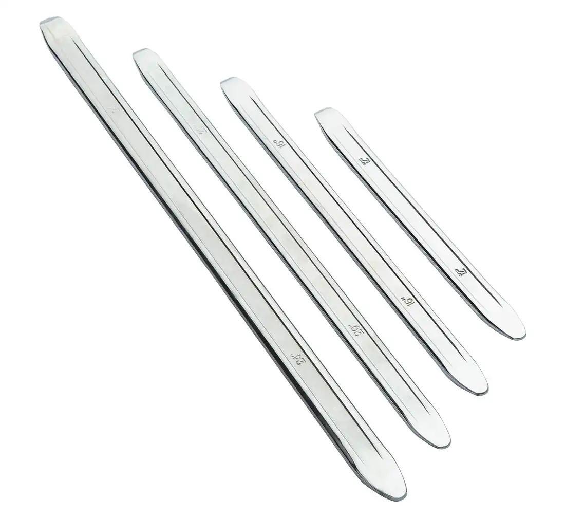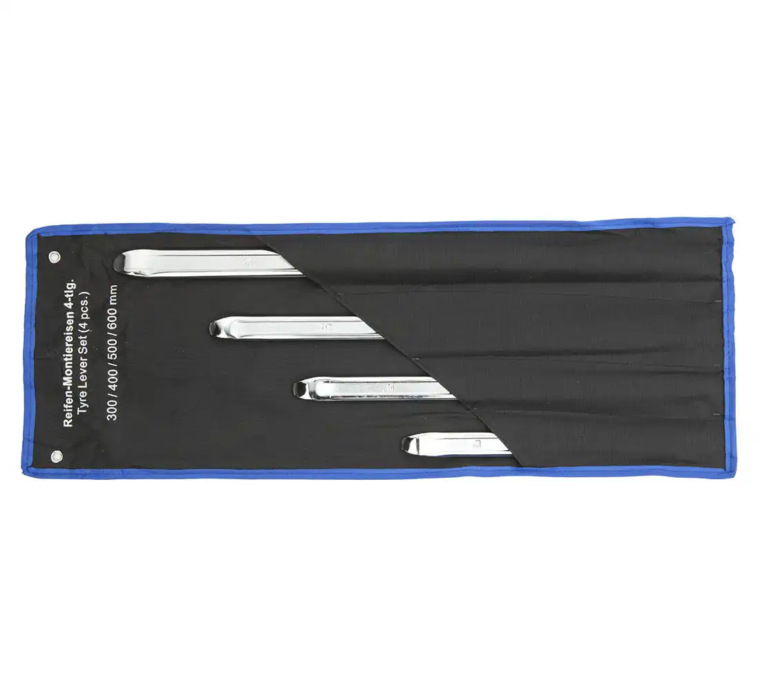 - A set of professional tyre lever for different tyre sizes. The tyre lever are made of chrome-plated steel, which reduces wear and tear.