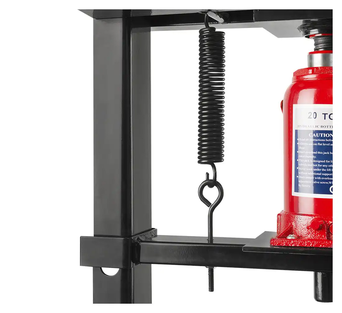 There is a bottle jack inside this press. It provides for years-long reliability. Also, there are two springs inside the press, so the piston goes back upon opening the valve.