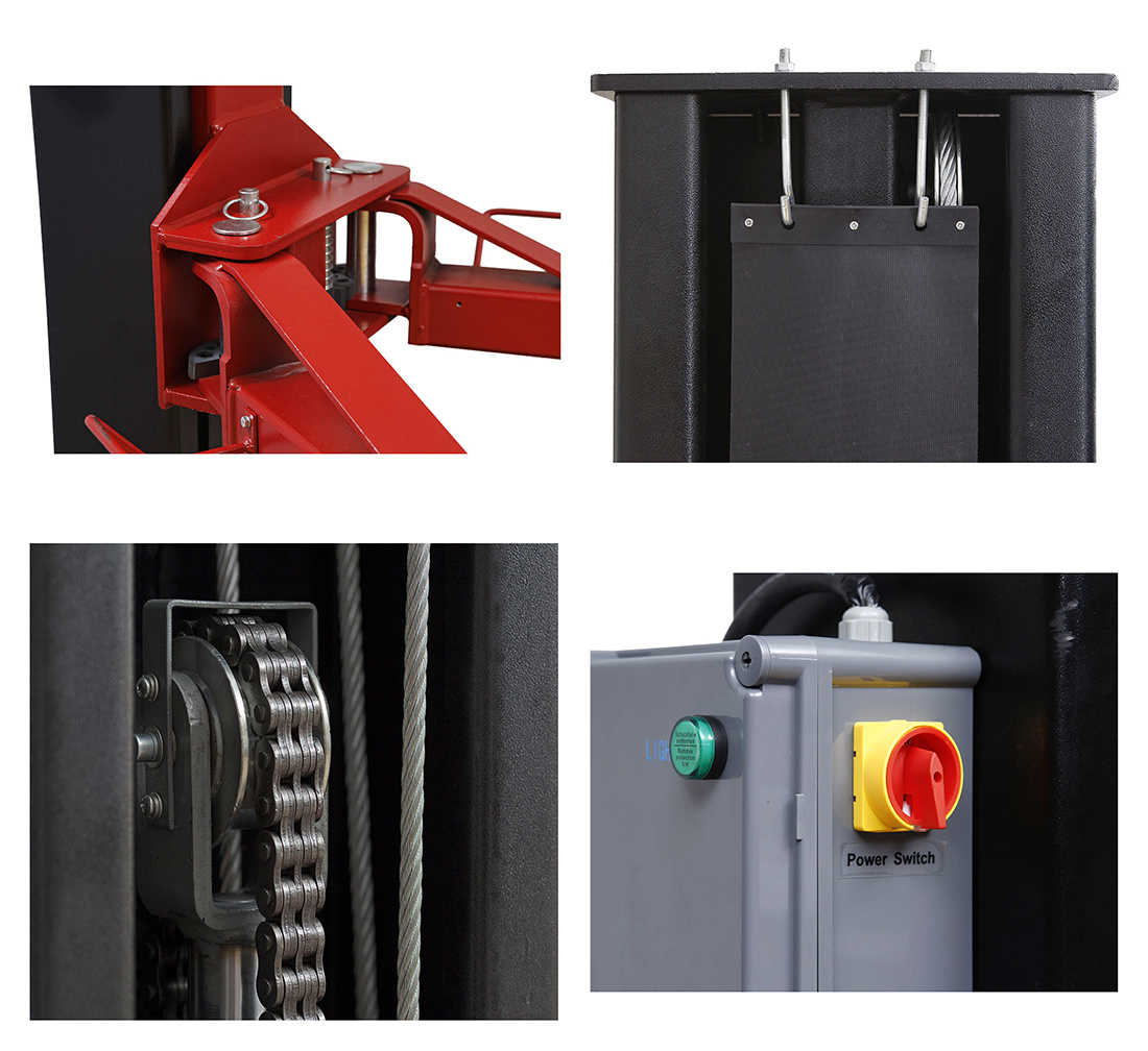 - Automatic two-post lift with 4 tons' capacity. Automatic unlocking of the safety feature while lifting the car.