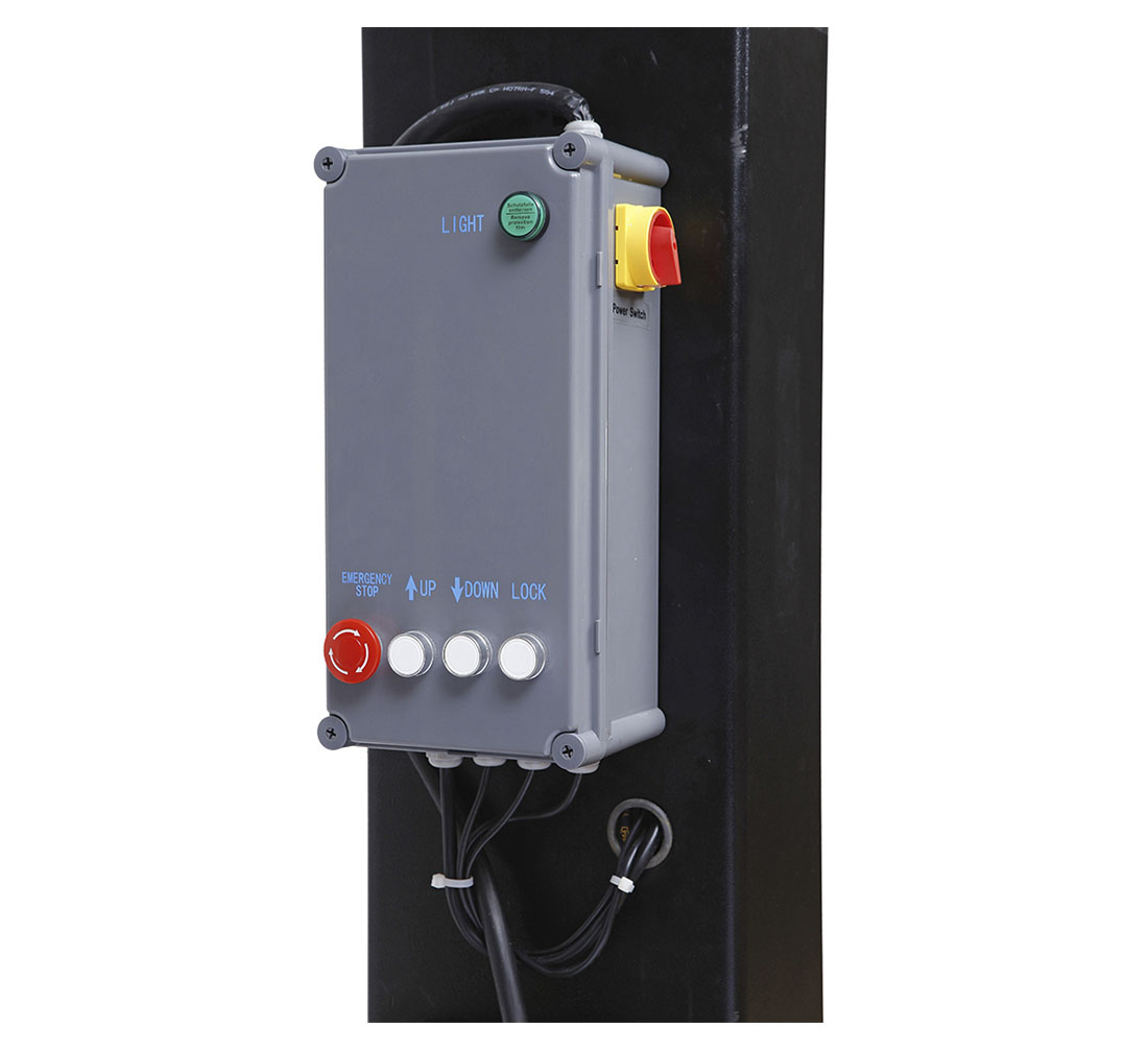 Look at the panel: there are only three buttons, one for lifting, another for decrease and another for pushing the car to the lowest position. Using this lift is extremely easy.