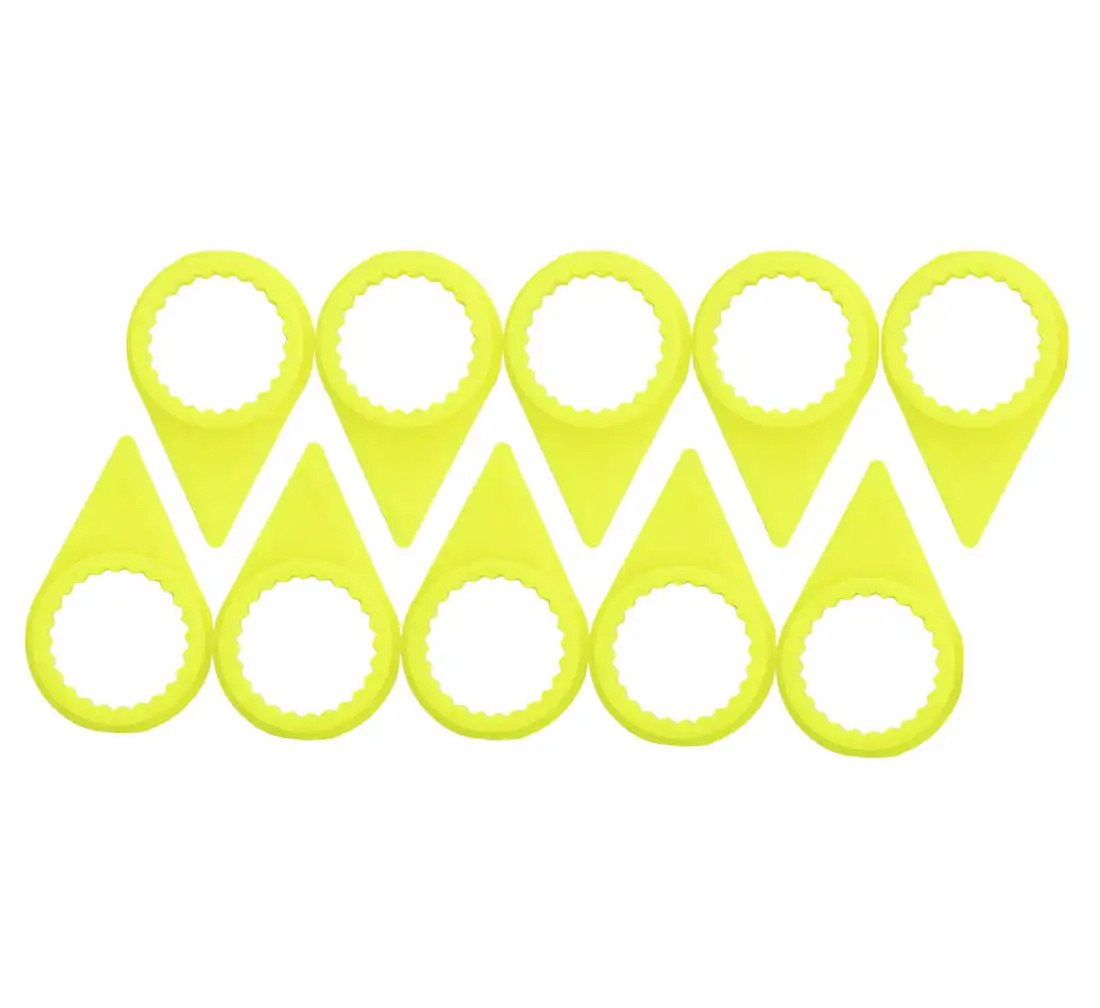 These overlays are a connection of two loose nut indicators. Both are joined with a flexible tape to determine if the lugs are going to unscrew. If one of the nuts is moving in the wrong way, the tape will straight out, thus causing the wheel to stop turning.