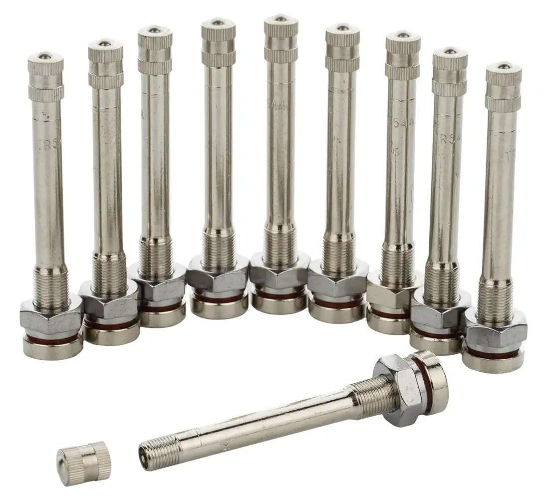 • The valve is made of durable metal and the contact point with the rim is protected by a rubber gasket. The valve is bolted to the tubeless wheels of trucks and construction vehicles.