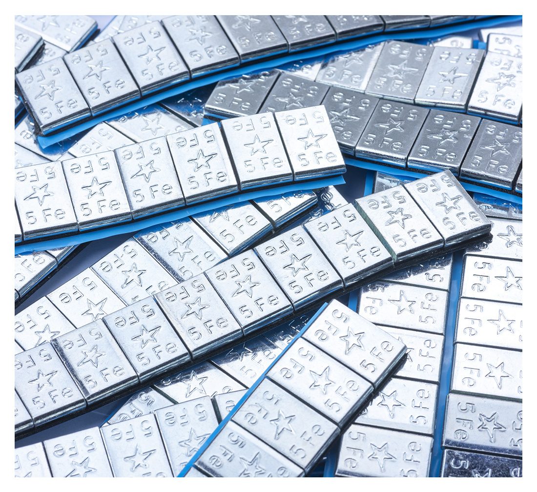 Adhesive counterweights for alloy wheels, used for balancing the wheels on cars. Form laminated bar allows you to discretely hide unsightly weights is not the same appearance of an aluminum alloy. Weight bar (60g) is broken down into 12x5g, so that we are able to trim the exact number of weights to the imbalance, which is usually provided just what 5g. Another advantage is the flexibility of the belt, which adapts perfectly to the rim. The thickness of the weight along with the tape is only 4mm, so do not worry about hooking the drum or brake disc calipers. Strong tape permanently attaches weights to the rim and even sporty driving or ""Polish road"" are not able to break it. Weights galvanized steel coated with a protective layer against corrosion and splashes. Gloss zinc fits perfectly into shiny, metallic or chrome rims. They are also available in the store weights coated (for rims matte shades of gray) and black (coated with black paint).