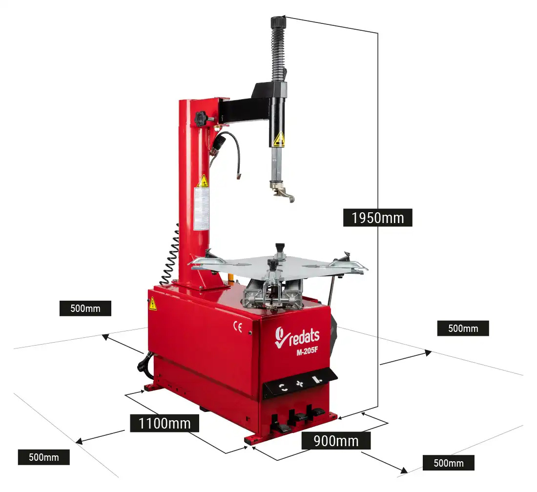 - Tyre changer REDATS M-205F, Wheel sizes: 12-24''. Power source 230V. Semi-automatic.