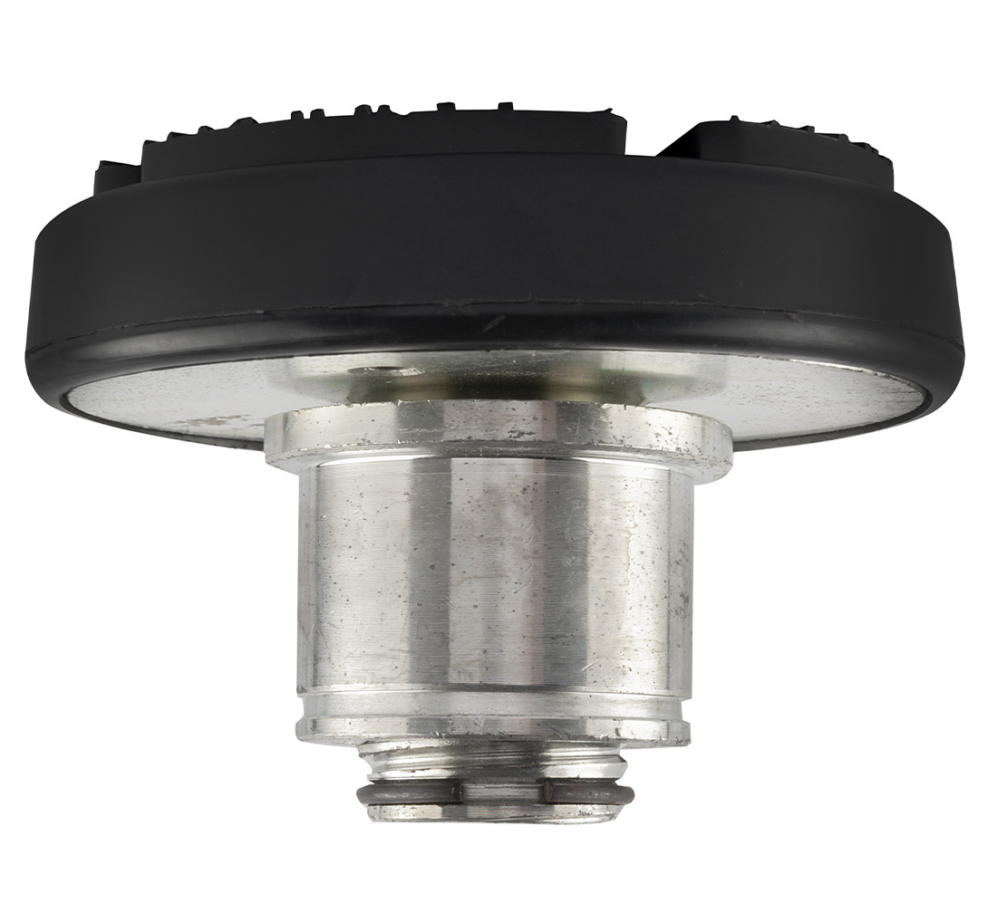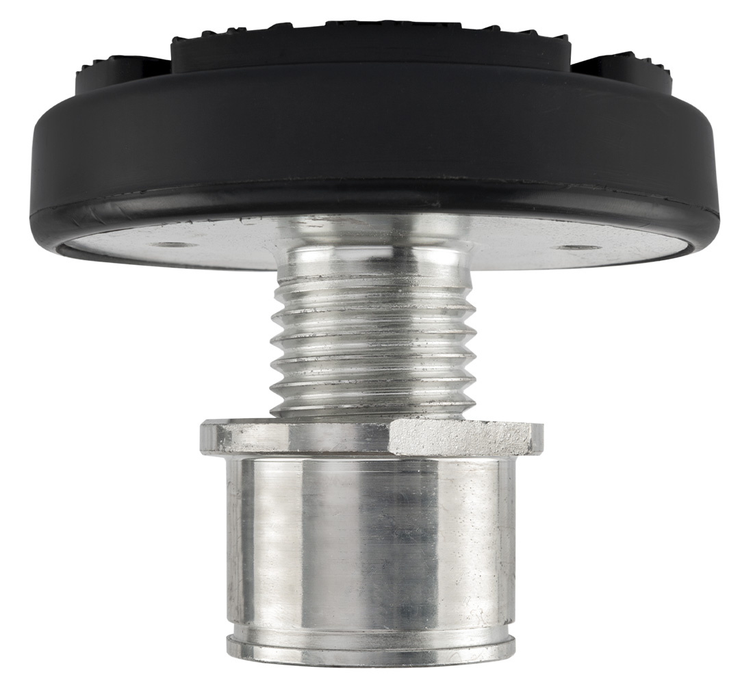 Two-post lift rubber pad with a ring and a sleeve.
