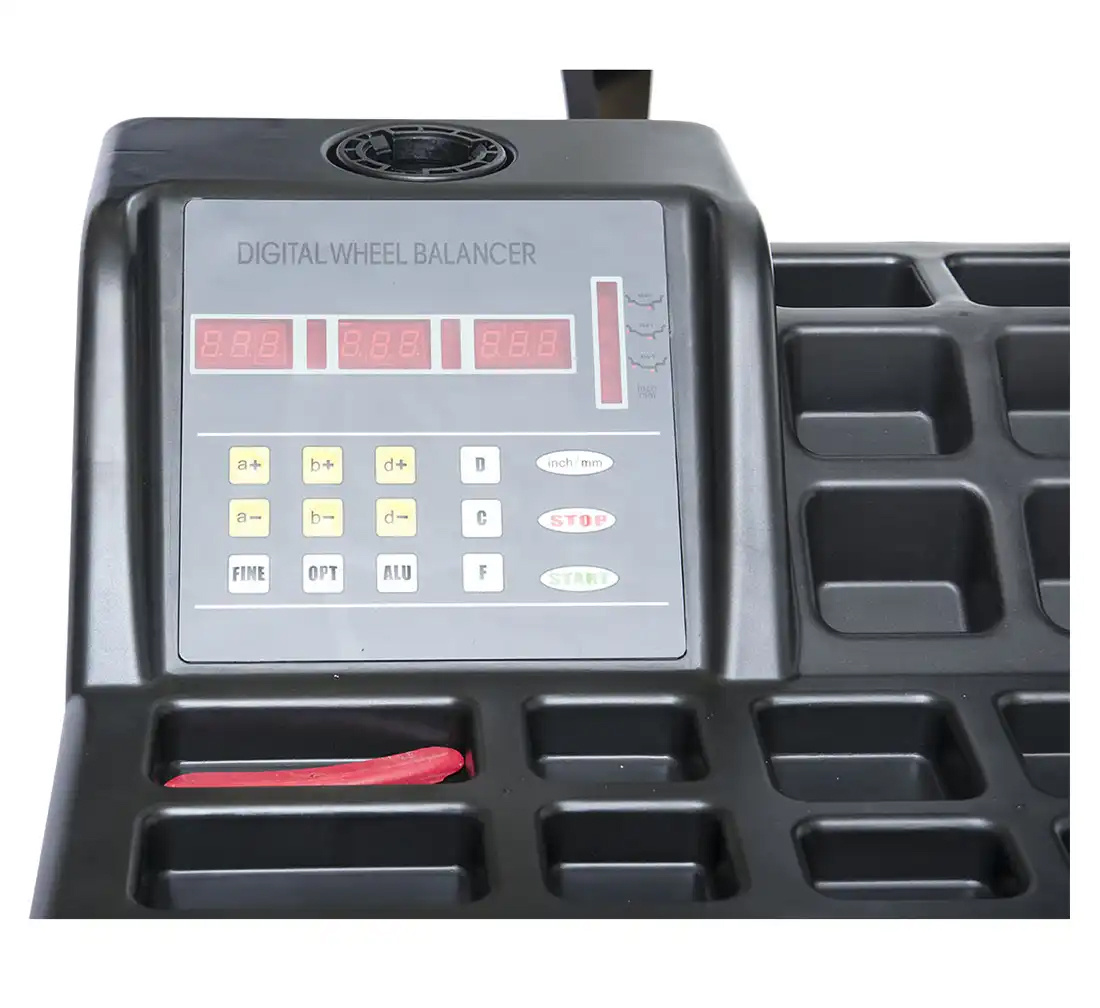 The balancer has a clear control panel with LED displays. The device itself will signal the unbalance location of the wheel - it has a positioner for the unbalance location, in the form of an electromechanical brake, an audible signal and LEDs on the display.