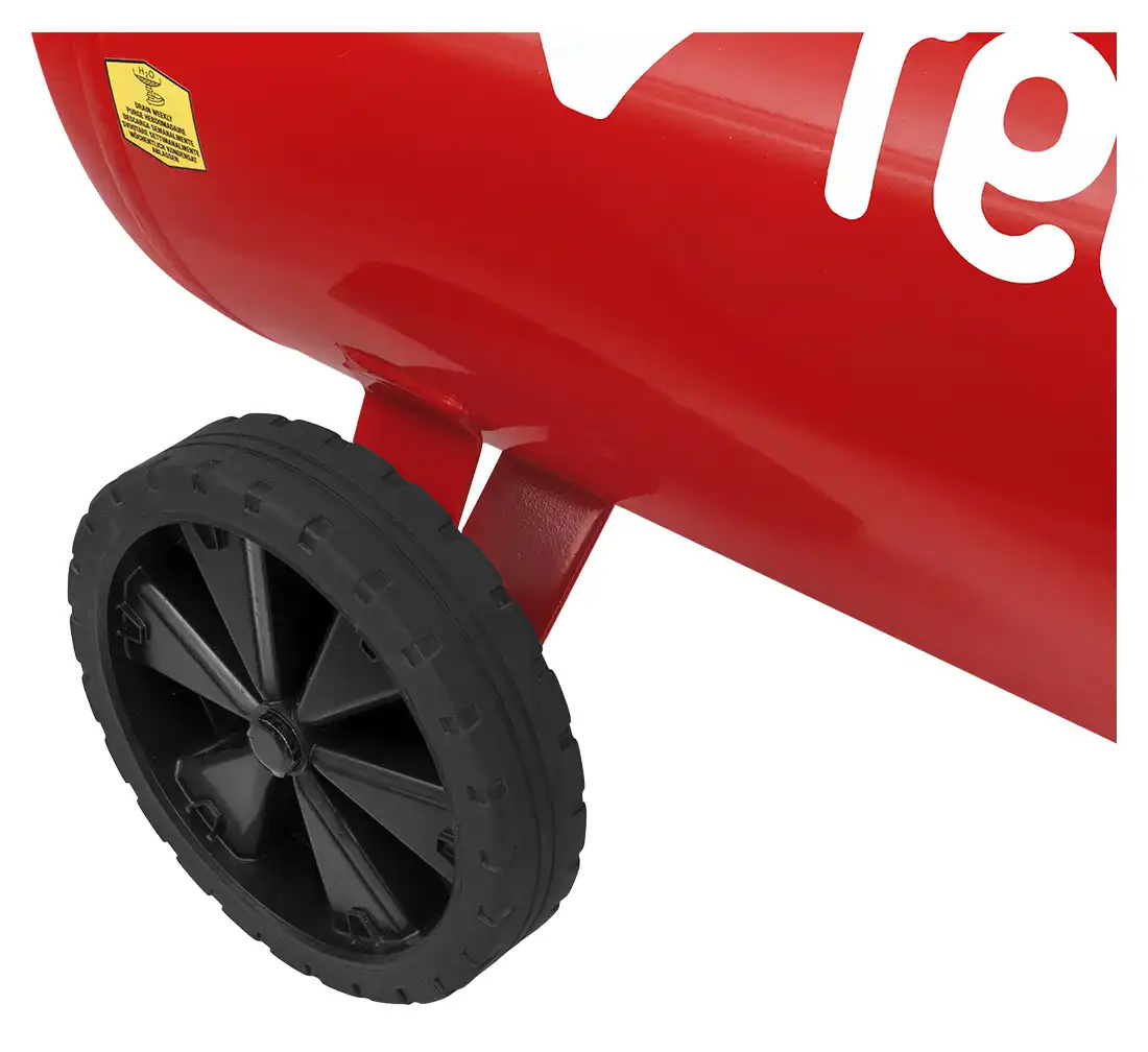- Piston compressor 100 L. Power source: 230V. Output: 2.2 kW.