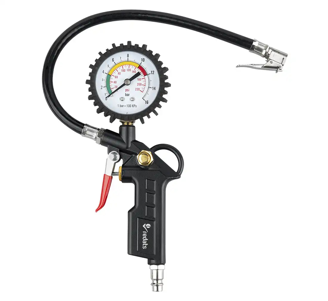 The inflator comes with a relatively large manometer - it means easy readout of the current pressure value.