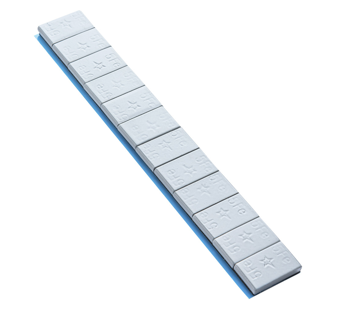 This set consists of 50 stripes of adhesive wheel weights for ALU wheels.