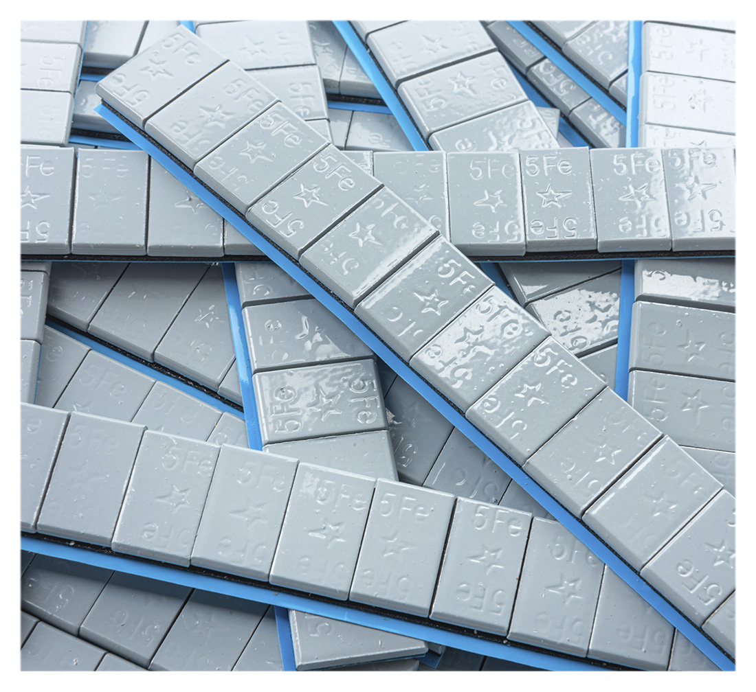 These adhesive wheel weights come with a wide tape - easy to peel off even with gloves on.