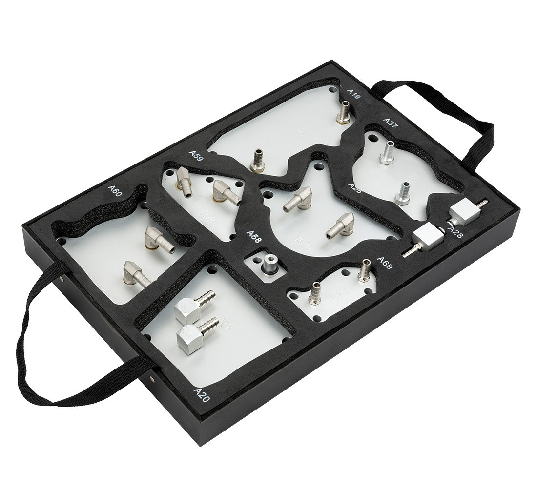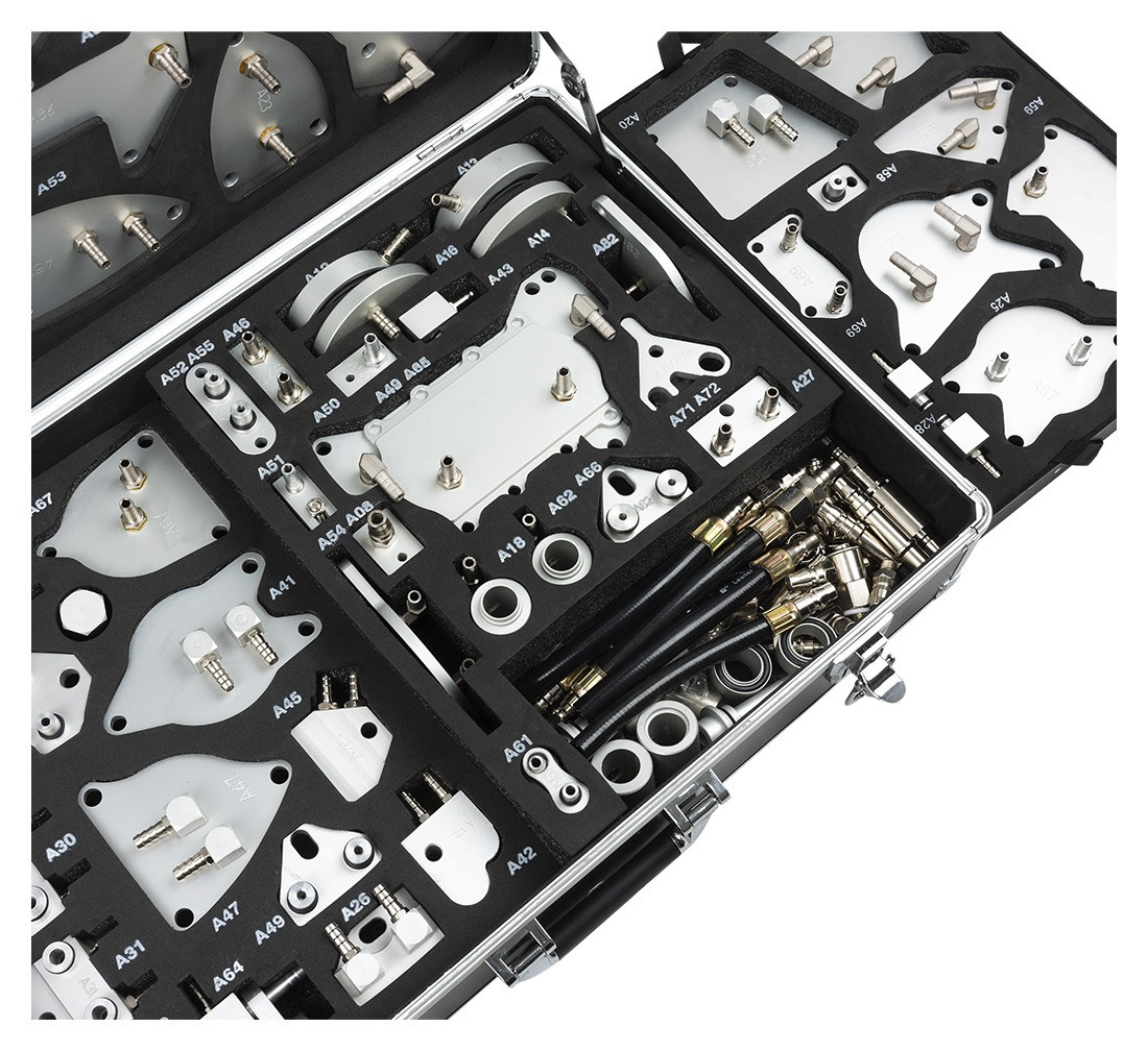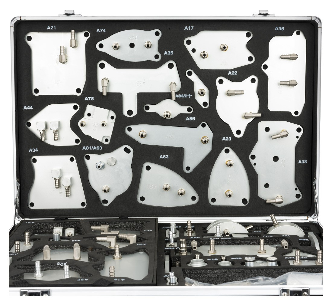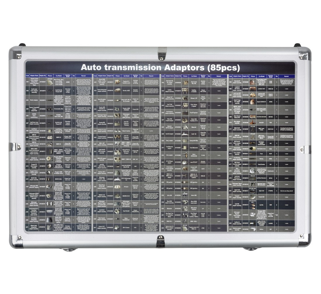 Here is a set of 85 adaptors designed for automatic transmission oil change/fill-up.