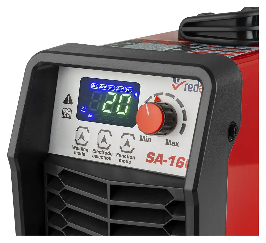 This welding machine comes with a practical knob - so you can easily set the desired parameters, like welding method.