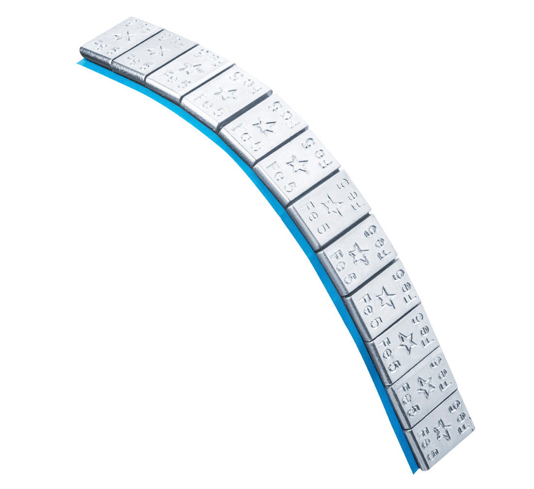 Adhesive counterweights for alloy wheels, used for balancing the wheels on cars. Form laminated bar allows you to discretely hide unsightly weights is not the same appearance of an aluminum alloy. Weight bar (60g) is broken down into 12x5g, so that we are able to trim the exact number of weights to the imbalance, which is usually provided just what 5g. Another advantage is the flexibility of the belt, which adapts perfectly to the rim. The thickness of the weight along with the tape is only 4mm, so do not worry about hooking the drum or brake disc calipers. Strong tape permanently attaches weights to the rim and even sporty driving or "Polish road" are not able to break it. Weights galvanized steel coated with a protective layer against corrosion and splashes. Gloss zinc fits perfectly into shiny, metallic or chrome rims. They are also available in the store weights coated (for rims matte shades of gray) and black (coated with black paint).
