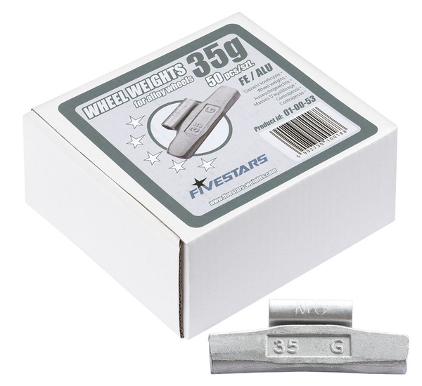 - FIVESTARS clip-on weights for balancing aluminium wheels. Steel (FE). Weights: 5-60 g