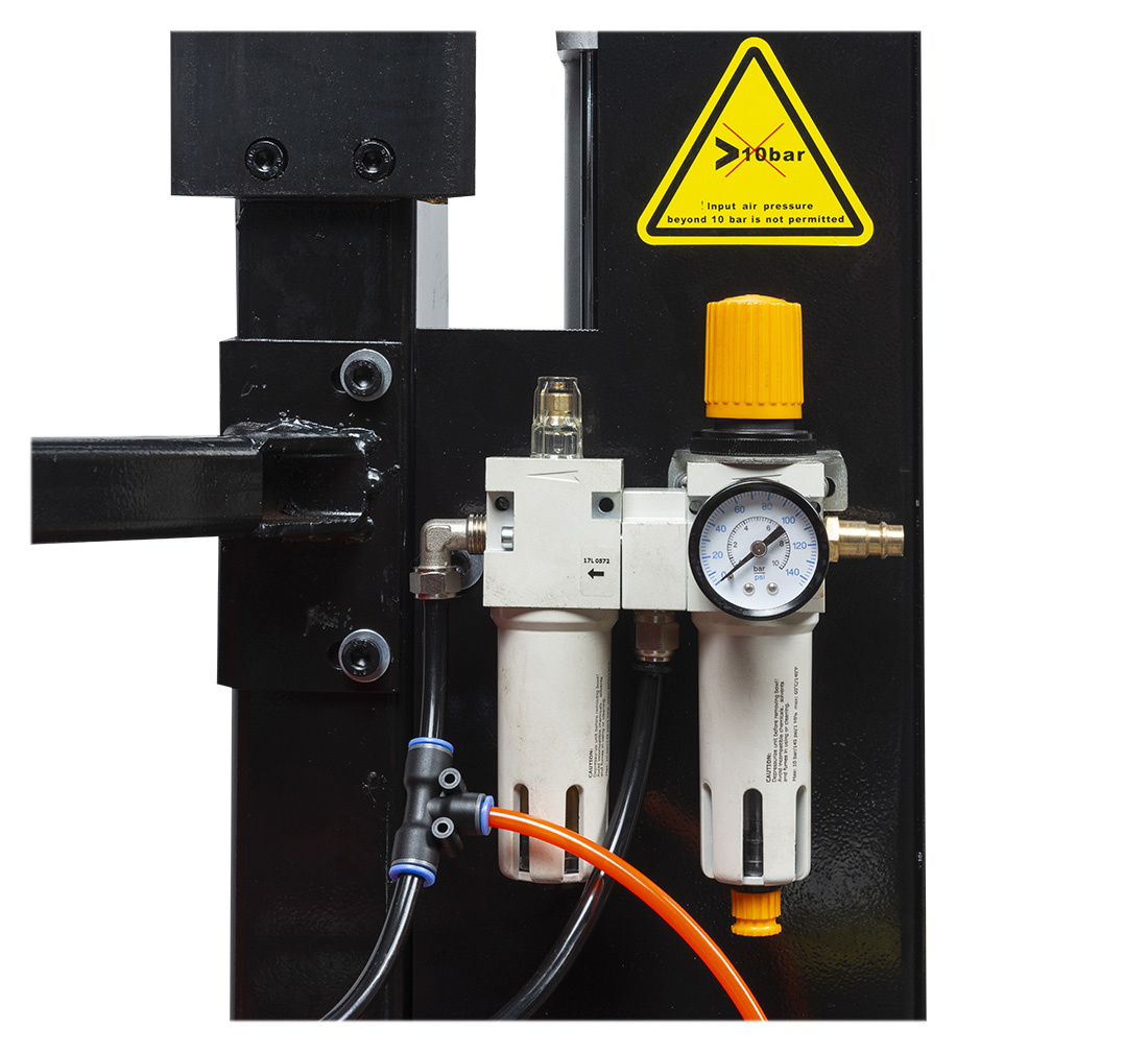 Both the turntable and jaws are made of top-notch materials. They are going to last for long, provided that the basic maintenance jobs are done. Tight pneumatic system is equipped with air separators and quick couplings designed by renowned brands.