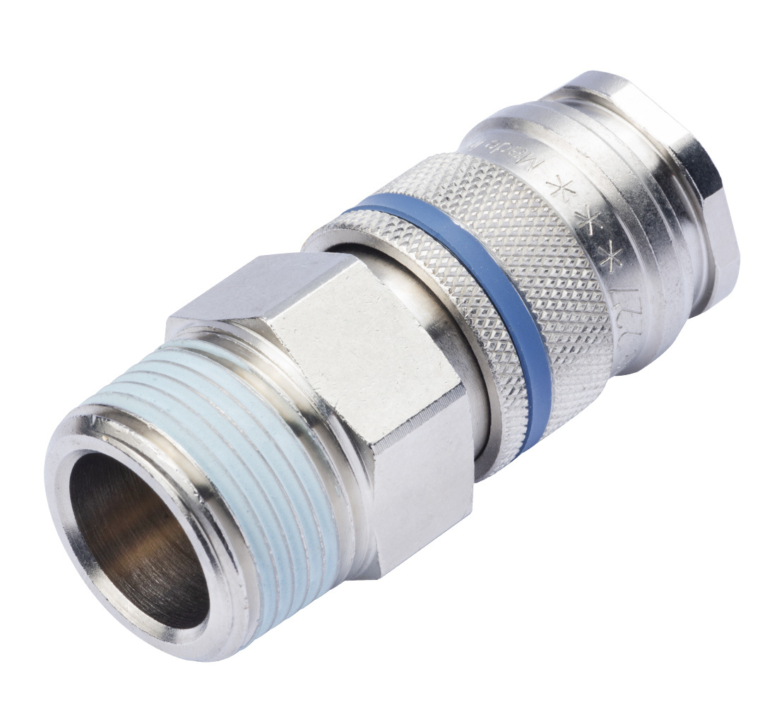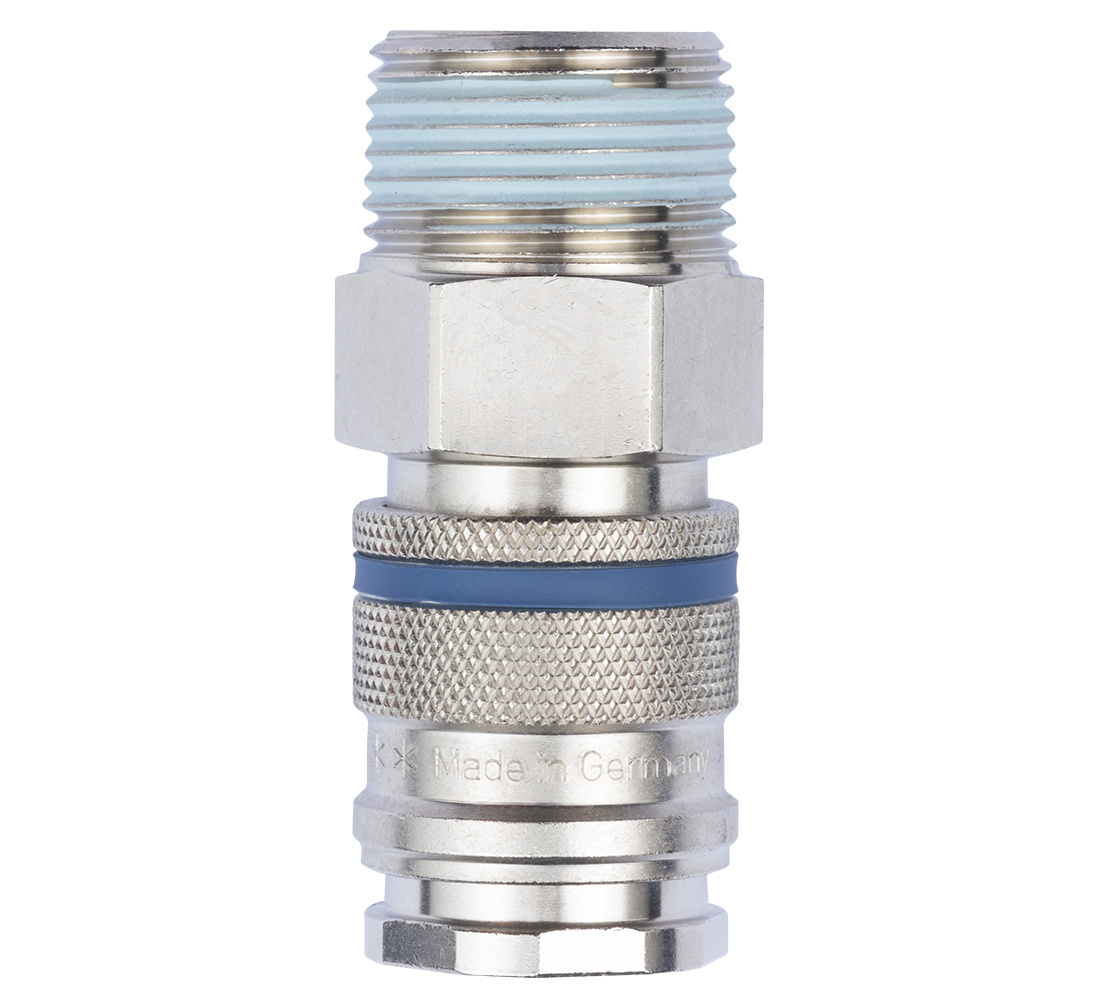 The coupler has a nominal diameter of 10 mm and an external thread of R 3/4". Thanks to its solid design and steel locking sleeve, it’s resistant to damage, while high airflow and low pressure drop help you work more efficiently. One-hand operation adds extra convenience.