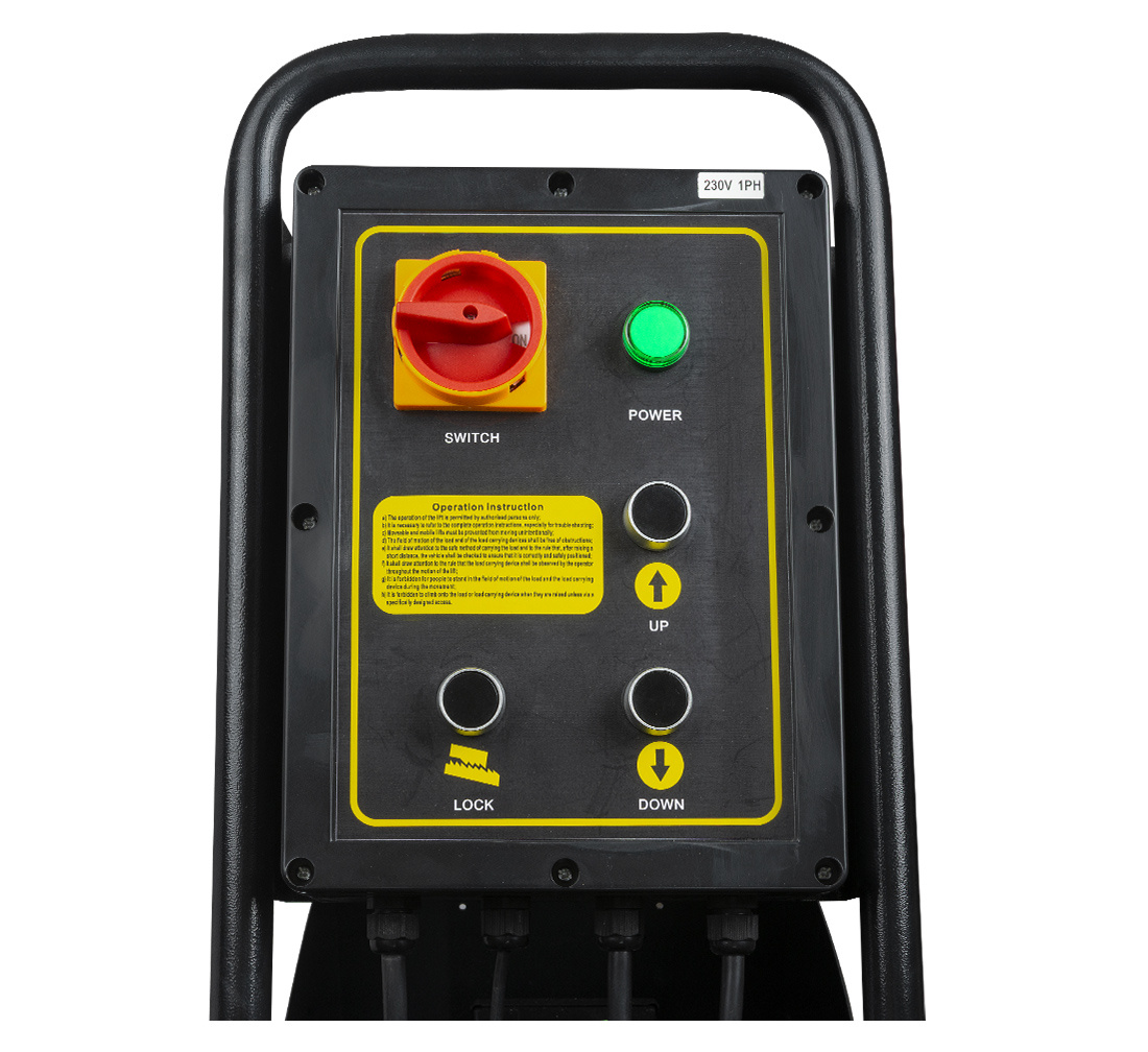 The lift operates on standard 230V power. This is a strong selling point for workshops that do not have a three-phase installation or want to avoid additional electrical upgrades.